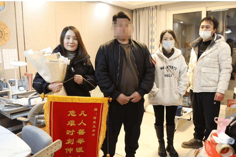“何老师,没有你,我们当时真的不知道该怎么办,是你给了我们全家希望。”1月9日晚,在社区网格员和工作人员的陪同下,小王(化名)和亲属手捧鲜花和锦旗来到何求文家中,向救命恩人何求文鞠躬致谢,并向她送上新春的祝福。